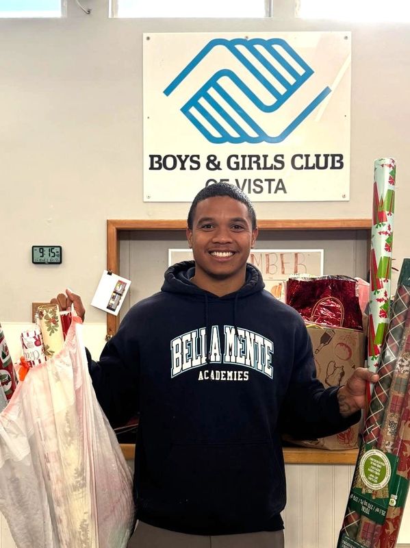 Sunrise Vista Kiwanis Club member Anthony Beaver holds some of the gift wrap items donated by the club to the Vista Boys and Girls Club in preparation for its annual holiday adopt-a-family program. The Kiwanis club will adopt three underserved families this year, providing parents and children with gifts.