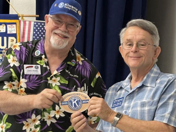 The Sunrise Vista Kiwanis Club was recognized June 7 as having achieved "Distinguished Club" status by Kiwanis International for the 2023-24 administrative year. Division 37 Lieutenant Governor Craig Adams presented a banner patch and special officer pins to current club President Steve Dreyer during the division's monthly meeting. Sunrise Vista was the only North County club receiving the recognition. The pins will be presented to Immediate Past President Nancy Speaks and Secretary Erin Feeley.